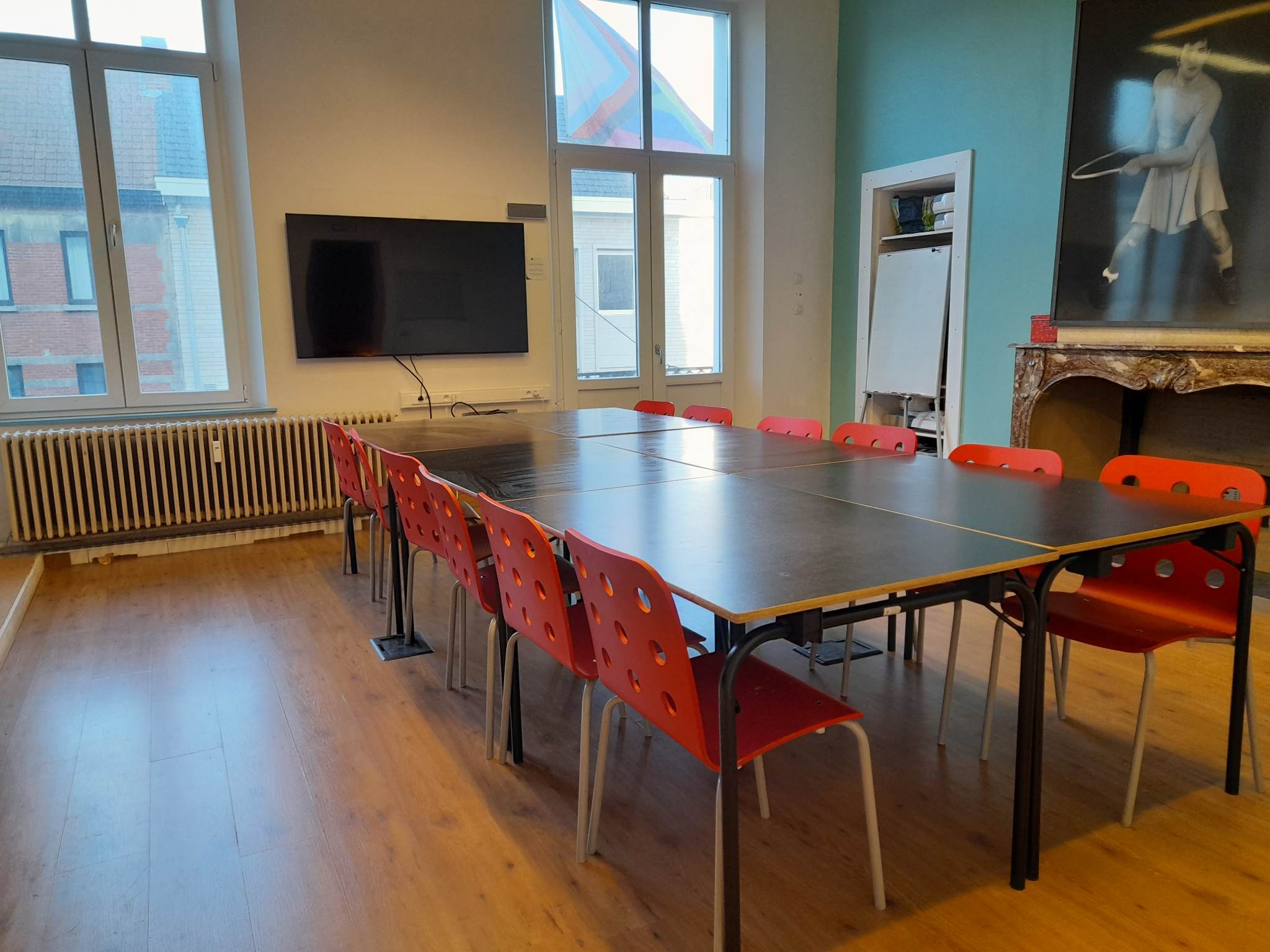 De Lambillotte is gelegen op de eerste verdieping en is voorzien van een scherm met HDMI verbinding. De ruimte heeft een oppervlakte van 36m² en biedt hiermee wat mogelijkheden qua opstelling. Ideaal voor vergaderingen en workshops.